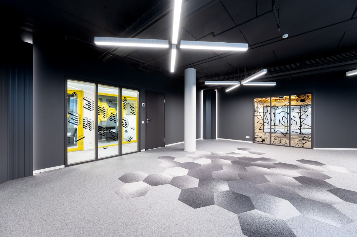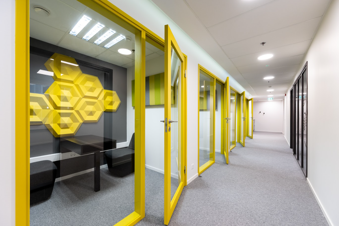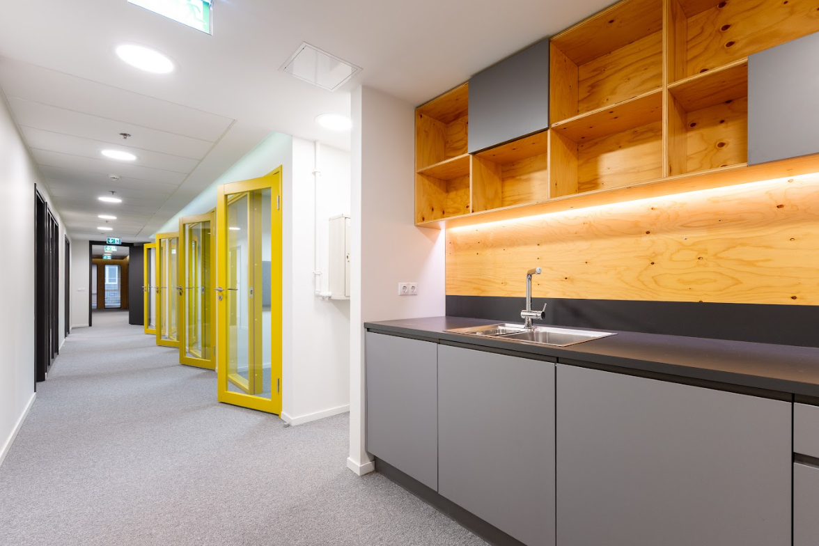 Abright and recently renovated 470 m² office space is located on the 3rd floor of the building and offers a well-planned space solution for teamwork and individual tasks: