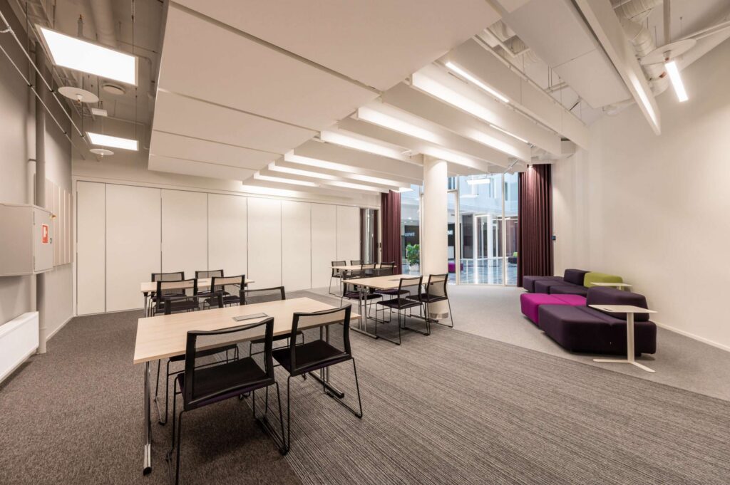 Hubane seminariruum erinevate töötubade, koolituste või tiimipäevade läbiviimiseks, mis mahutab kuni 24 inimest. Ruumi eeliseks on laudade liigutamise võimalus, mistõttu saate kujundada seminariruumi vastavalt oma vajadustele ja luua erinevaid töörühmi. Ruum on varustatud summutuspaneelide, Kandao 360° All-in-one Conferencing kaamera, mikrofoni, kõlari, 85“ TV-ekraani ja Barco Click&Share esitlustehnikaga. Broneerige endale sobiv ajavahemik mugavalt läbi broneerimissüsteemi.